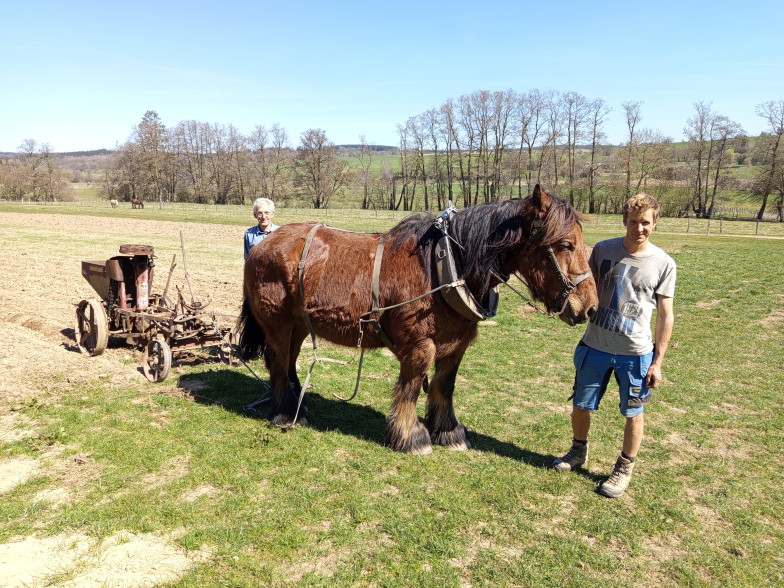 Naissance des agneaux et des vaux... Préparation de la terre avec Lila notre jument de trait, semis et plantations...
